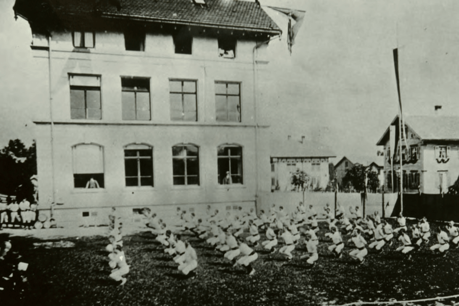 Das 1894 erbaute Schulhaus Grof umfasste drei Klassenzimmer und ein Arbeitszimmer im Erdgeschoss. Im zweiten Stock befand sich ein Lehrerzimmer. Das 14 Meter hohe und nur 12 Meter lange Gebäude konnte den Platzbedürfnissen der wachsenden Schulgemeinde gerade einmal bis 1911 gerecht werden. Der Anbau eines Westflügels mit zwei Schul- und einem Handarbeitszimmer sowie der Ankauf eines Turnplatzes beim Schulhaus brachten Erleichterung.